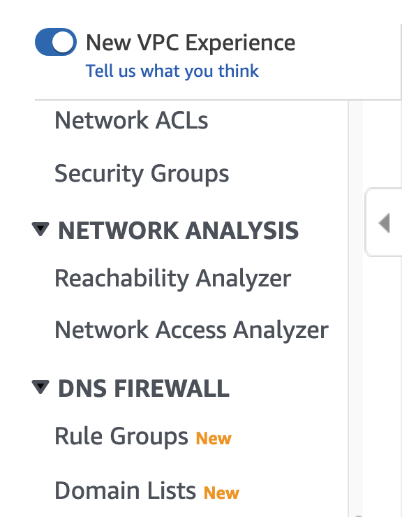 With this in mind, it’s relatively easy to create block lists for a subset of DNS domains. The DNS Firewall configuration panel is accessible from the VPC page within the AWS console.