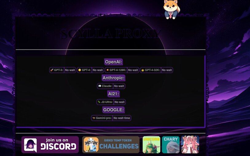 One of the traffic sources was identified as an illicit reverse OAI proxy known as “Scylla” (scylla.dragonetwork.pl). The site for the proxy currently hosts links to a Discord server, a user board, and contact info for purchasing access with either Bitcoin or Monero. This activity is consistent with “LLMjacking” tactics detailed by Sysdig, specifically the use of a reverse proxy for monetizing hijacked infrastructure.