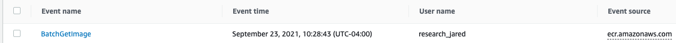 The image below shows the request parameters of the “BatchGetImage”event generated from executing a docker pull against a specific image. Inspecting this BatchGetImage event, the following can be found in the request Parameters. Note, the content below has been changed for data sensitivity reasons.