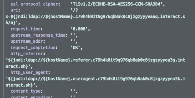 An examination of Lacework web logs following the release of the Log4j proof-of-concept revealed numerous exploit attempts from various sources. One trend that became apparent was the presence of the domain “interact.sh” among the Log4j exploit artifacts: