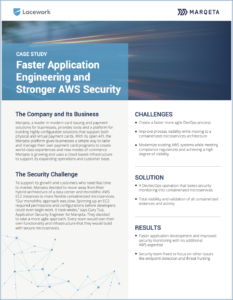Download our solution brief to learn about how Lacework helps you ensure customer safety and industry compliance by delivering deep visibility for configurations across all your enterprise’s cloud accounts and workloads.