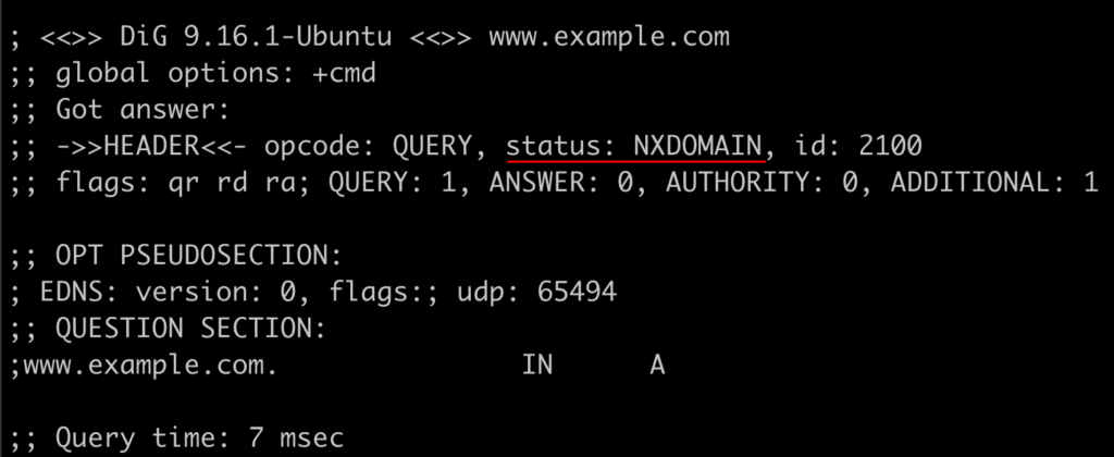 Figure 6 – Responding with Static: NXDOMAIN