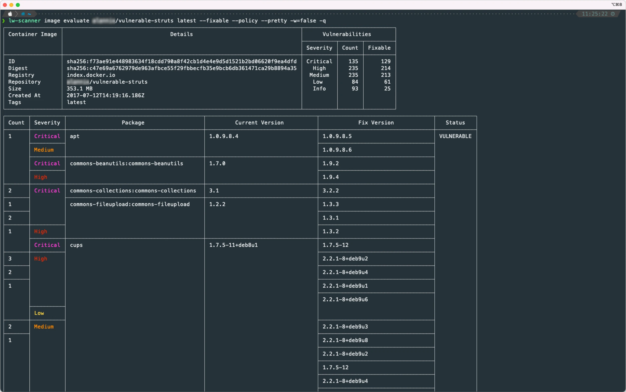 The Common Vulnerability Scoring System (CVSS) is a framework for rating the severity of software vulnerabilities and their risk scores provide a good approximation of the relative importance of vulnerabilities. However, it’s important to understand the potential business impact of the affected system to your organization itself. One indicator you can use to assess the level of impact is to gauge how many images are affected by a vulnerability. For example, a high-severity vulnerability present on hundreds of running containers should likely be fixed before a critical vulnerability that only shows up in a couple of containers.