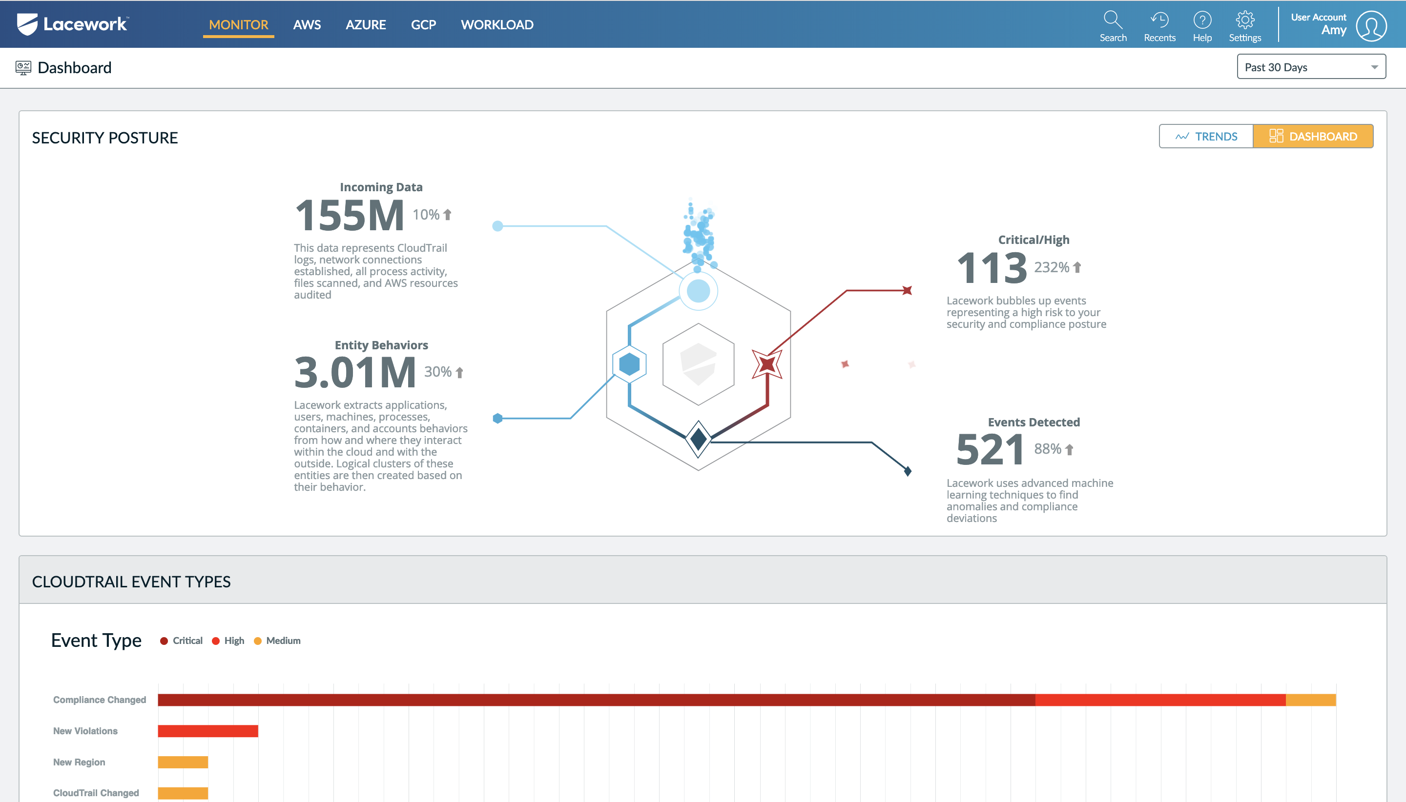Lacework’s approach uses automation and unsupervised machine learning. Security teams are able to deploy the Lacework agent across multiple cloud platforms, within application orchestration environments like Docker and Kubernetes, and even in hybrid workloads. As a SaaS service, organizations are able to review historical event data across their infrastructure to understand where breaches occurred and identify risk areas.